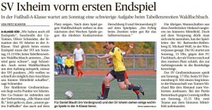 Auch in dieser Woche sind wieder drei Testspiele geplant: 14.02.2017 19:15 SV Ixheim – TV Althornbach 17.02.2017 19:00 SV Ixheim – SG Rieschweiler II 18.02.2017 16:00 SV Ixheim – SG Eppenbrunn