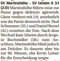 Am Wochenende gab es leider zwei Niederlagen gegen höherklassige Gegner. Allerdings präsentierte sich der SVI in beiden Spielen über weite Strecken – vor allem in der defensiven Grundordnung – sehr gut.