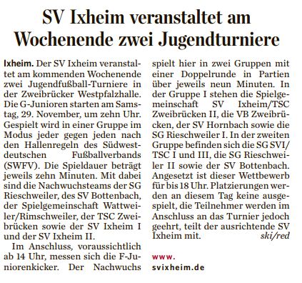 Bericht zum G- und F-Jugenturnier von Andreas Schneider | Nov. 28, 2014 | Allgemein Quelle: Pfälzischer Merkur 28.11.14