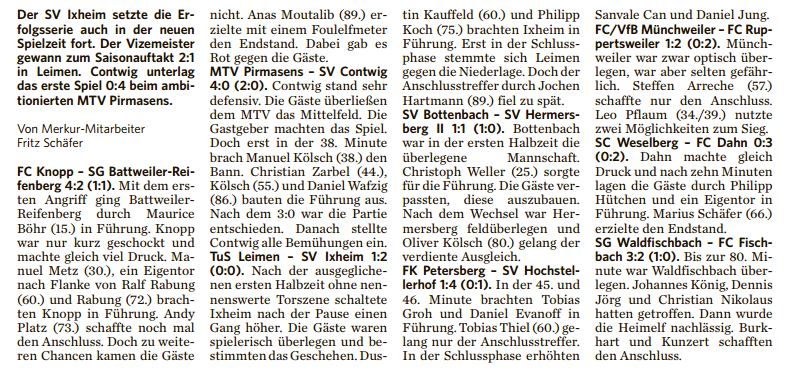 Berichte aus dem Pfälzischer Merkur von Andreas Schneider | Aug. 4, 2015 | Allgemein Quelle: Pfälzischer Merkur 03.08.2015