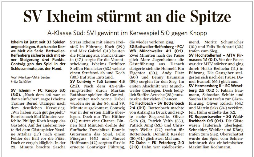 Berichte aus dem Pfälzischer Merkur von Andreas Schneider | Aug. 12, 2015 | Allgemein Quelle: Pfälzischer Merkur 10.08.15