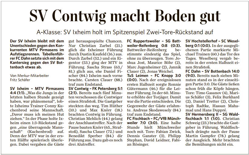 Berichte aus dem Pfälzischen Merkur von Andreas Schneider | Nov. 9, 2015 | Allgemein Quelle: Pfälzischer Merkur 09.11.15